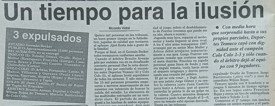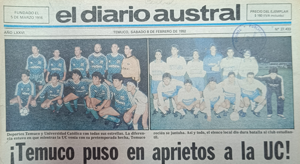 A inicios de la década, en el verano de 1990, Deportes Temuco sufría en la liguilla para no bajar a tercera división. Y al año siguiente (1991), se juega un partido de “presagio”. Se enfrentaron el futuro campeón de América, Colo Colo, frente al futuro campeón del ascenso, Deportes Temuco.