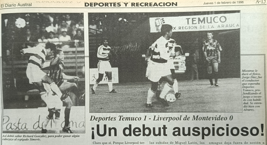 En 1996 el rival fue el Liverpool de Uruguay, equipo que finalizó tercero en la primera división charrúa. ¿El resultado? Ganó Temuco por 1-0 con gol de Marcelo “Papelucho” Álvarez.