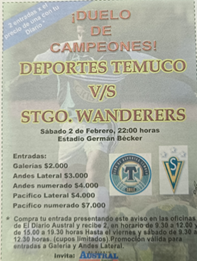 En 2002 se vivió la “Noche de Campeones” entre Deportes Temuco (monarca del ascenso) y Santiago Wanderers (campeón de primera). Los caturros venían a adquirir rodaje antes de iniciar su participación en Copa Libertadores de América (donde fueron eliminados por un punto por el Wanderers uruguayo.