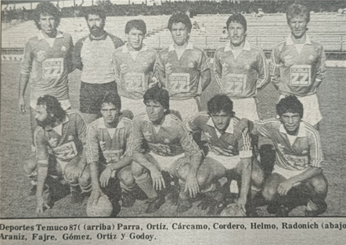 Luego del arduo proceso para volver al fútbol profesional como Deportes Temuco, en el verano de 1986 se encontraba disputando los partidos finales de la segunda división. En 1987, jugó su partido de presentación del plantel frente a Rangers el 14 de febrero. Los hombres de Roque Mercury vencieron a los rojinegros por 3-1.