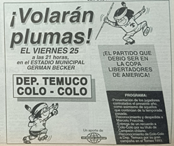 Programa del duelo entre albos y albiverdes de 1994. Fuente: El Diario Austral de Temuco.